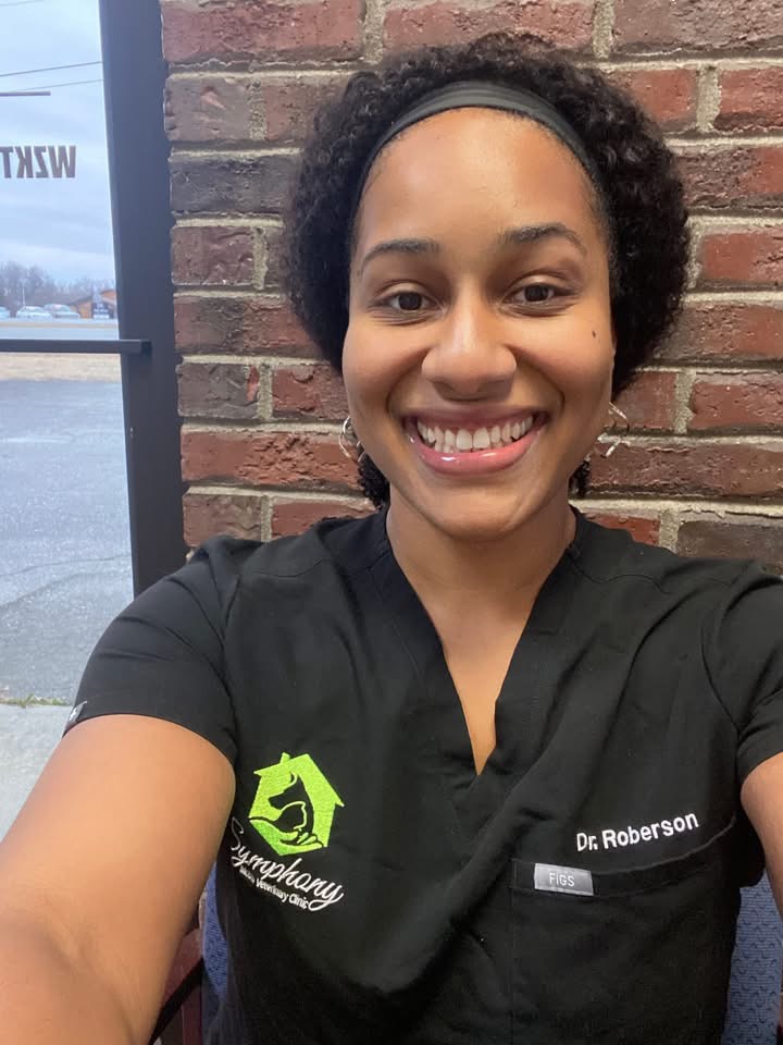 Dr. Symphony Roberson graduated cum laude from North Carolina State University with a Bachelor of Science degree in Zoology. She obtained her Doctor of Veterinary Medicine degree from Ross University School of Veterinary Medicine, where she graduated with high honors. She continued her clinical training at North Carolina State University College of Veterinary Medicine, receiving honors grades in several clinical rotations.